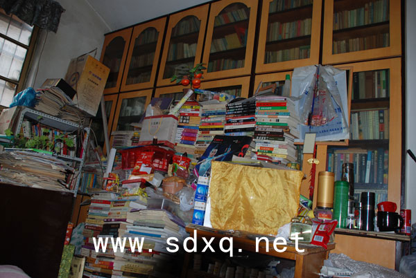 苟老师那一屋子的书让人惊讶不已。不大的书房里,左边是一张大床和一大一小两个书柜;右面整堵墙被一个大书柜挡住了,书柜前又放着两排书,有半人多高;满满当当的屋子里,靠窗放着一张桌子和一把椅子;书桌上也放满了书,一盆小花儿被挤在狭窄的空间里,叶子绿绿的,给人一种生机盎然的感觉……整个房子虽让人感觉略显局促,但又让人感觉非常温馨。作为一个文化人,能与这一屋子书为伴伏案工作,我想,苟老师是乐在其中的。