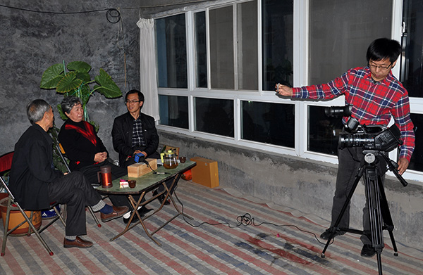 采访最后因天色已晚又无灯光只好用手机照明勉强录制完毕