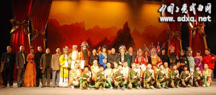 演出结束,长治市领导上台与演员一一握手并合影留念。