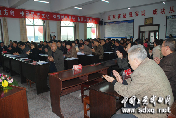 上午9时,军乐声声,礼炮齐鸣,大会在一派喜庆的气氛中开始。首先,协会筹备组介绍了协会筹备基本情况,高平市文体广电新闻出版局领导宣读了“关于成立高平市上党戏迷协会的批复”,高平市民政局领导宣读了“关于同意登记高平市上党戏迷协会的批复”。大会表决通过了《高平市上党戏迷协会章程(草案)》和协会第一届理事建议名单,选举产生了协会第一届领导机构,原高平市东城办事处党委副书记、城东党总支书记蒋民富当选为主席。会上,新当选的协会主席还为协会顾问、名誉主席、名誉副主席颁发了聘书,并为高平市上党戏迷协会正式揭牌。晋城市上党戏迷协会会长张付军、长治市青年戏迷协会会长焦新育分别宣读了贺信,祝贺高平市上党戏迷协成立。蒋民富主席表示,在以后的工作中将积极作为,开拓进取,认真学习晋城市上党戏迷协会的先进经验,加强交流合作,共同为传承地方文化、弘扬上党戏曲做出新贡献。