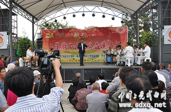 (本网讯 通讯员申陵锋报道)为喜迎党的十八大胜利召开,引导健康文明的生活风尚,展示戏迷票友的靓丽风采,9月2日下午,由市文化广电新闻出版局主办、市上党戏迷协会承办、市群众艺术馆协办的“向党的十八大献礼——上党戏曲大型公益演唱会”在晋城市凤西广场成功举行。