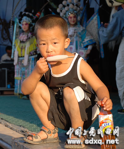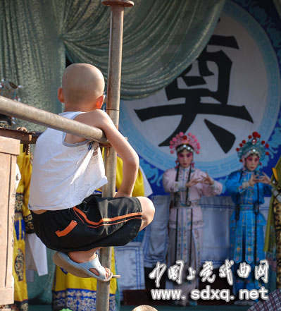 在戏台下跑来跑去的,或许会成为小戏迷呢。