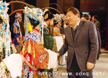 演出结束后,市领导和上党戏曲专家走上舞台,与演员亲切握手并合影。