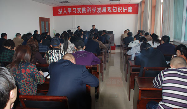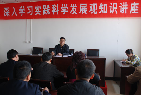 4月8日上午,在晋城市上党梆子剧团四楼教室内,市文化新闻出版管理局张秋旺局长为全团干部职工讲了一堂生动的“深入学习实践科学发展观”的知识讲座。