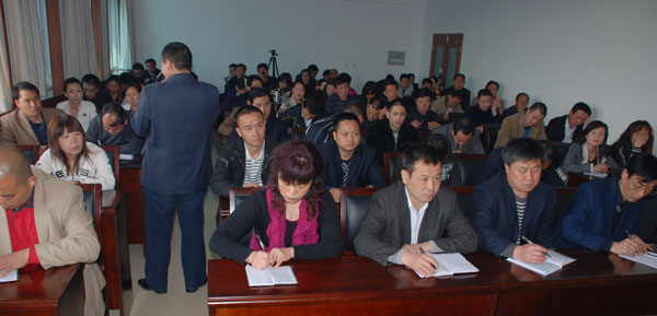 讲座由团长张保平主持,教室内座无虚席,大家认真聆听仔细记录,张局长就中央和市委确立这次学习实践活动的精神阐述了以下几项基本原则: