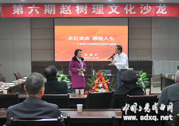 国家级非物质文化遗产上党梆子项目代表性传承人张保平作为主讲嘉宾,对戏曲与人生进行了多角度、多层次的阐释与讲解。市文联主席贾大一和我市文化、艺术界有识之士及部分戏迷一起参加了活动。